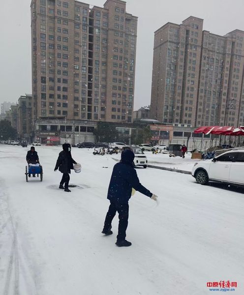 中原经济网驻马店讯(记者 杨晓 全媒体记者 冯占华 通讯员 王艳敏)受暴雪天气影响,西平县柏城街道北关社区在辖区塔东路(兴西大道至滨河花园段)、肖杨路等路段路面出现积雪,加之低温天气易引发结冰,给居民出行带来安全隐患。