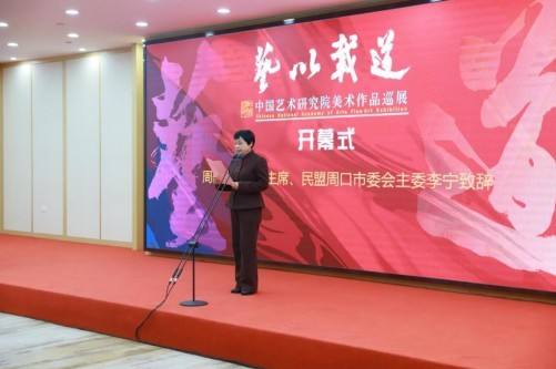 在开幕式上,李宁首先致辞。她说,周口地处黄淮腹地,历史文化厚重,有着8000多年的文化史,是华夏文明核心传承区之一,是羲皇故都、老子故里,是中华龙文化、姓氏文化、道家文化、农耕文化的重要发祥地。近年来,周口以创建国家历史文化名城为牵引,加快建设文旅强市,推动文化繁荣,这片历史与现代交融的土地正在迸发出更加蓬勃的生机活力。巡展落地周口,是文化盛事,也是民心所盼。它不仅为周口人民带来了一场高水准的艺术盛宴,更搭建了艺术交流的桥梁。通过展览,一定能进一步深化中国艺术研究院与周口在艺术创作、学术研究、人才培养等领域的合作;一定能让更多人感受到传统艺术的魅力,激发对文化自信的行动自觉,共同推动中华优秀传统文化的创造性转化与创新性发展。