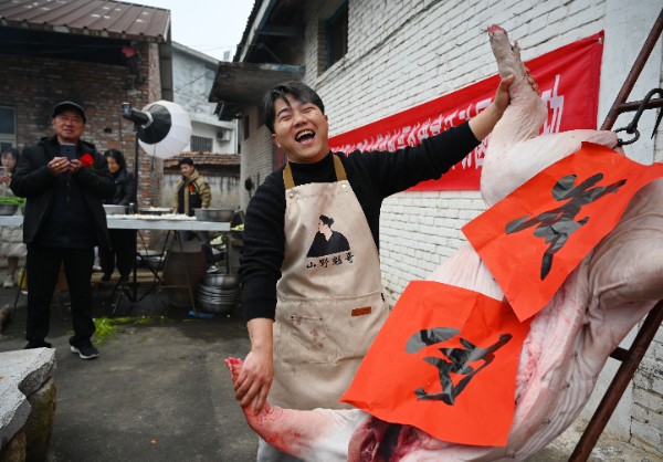 大家围坐一堂,品佳肴、话家常,在欢声笑语中拉近邻里情谊。这场充满乡土温情的“杀猪宴”,不仅烘托出日渐浓厚的节日氛围,更映照出乡村生活日益红火、和谐美满的新气象。