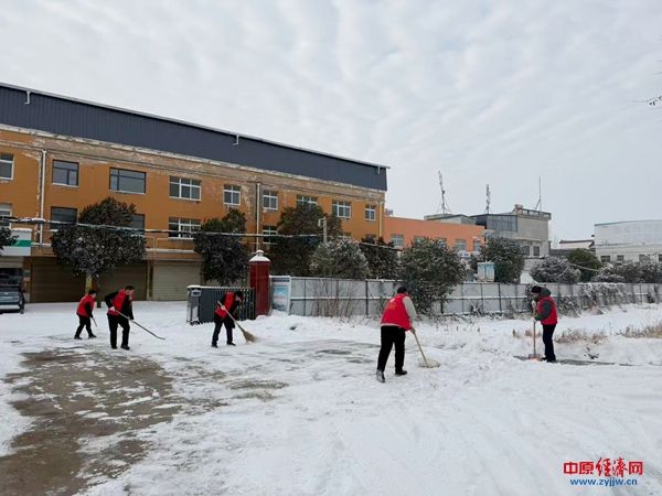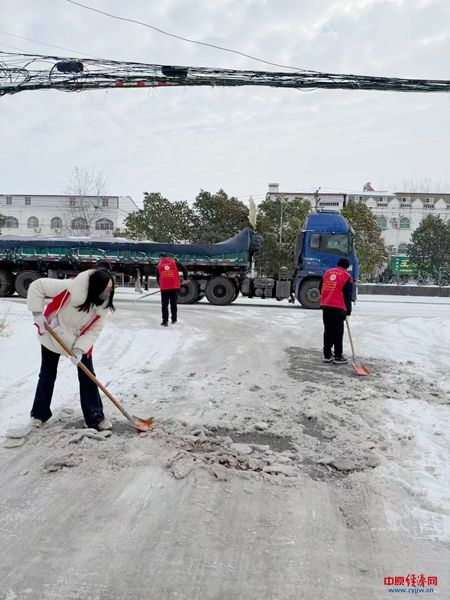 面对严寒与积雪,镇机关干部带头穿上红马甲,手持铁锹、扫帚等工具,对镇政府周边、主干道等重点区域的积雪进行集中清理。大家不畏严寒、分工协作,挥动工具铲除路面结冰,用行动保障群众出行安全。