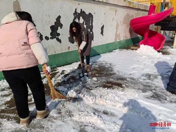 中原经济网驻马店讯(记者 杨晓 全媒体记者 冯占华 通讯员 薛景云)一场强降雪席卷全城,西平县人和三和小学被皑皑白雪覆盖,校园主干道、教楼前等区域积雪深厚,给师生出行带来极大安全隐患。安全重于泰山,一场以“守护安全”为主题的扫雪除冰行动在校园内火热开展。
