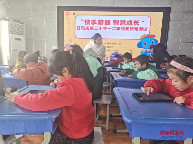中原经济网驻马店讯 (记者 杨晓 全媒体记者 晨曦 通讯员 董玲玲)为落实“双减”政策,打破传统纸笔测试模式,近日,驻马店市第二小学以“趣味闯关”为核心,为一二年级学生开展语文、数学无纸化测评活动,让学业评价变身“科技乐园”,在轻松氛围中检验学科素养。