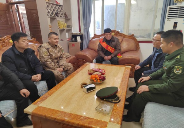 在刘佩鑫家中,镇党委、政府一行与军属亲切交流,详细了解家庭生活状况和实际需求,向军属介绍其在部队安心服役、履职尽责、立功受奖的有关情况,对军属长期以来支持国防和军队建设表示衷心感谢,并送上诚挚问候和祝福。