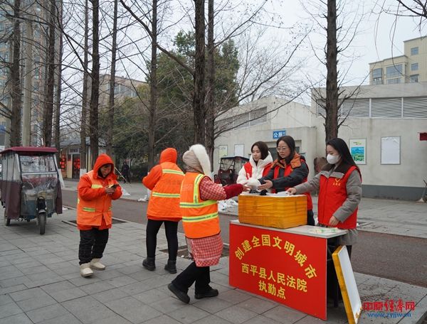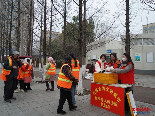 中原经济网驻马店讯(记者 杨晓 全媒体记者 冯占华 通讯员 杨斐)为更好地弘扬中华民族传统美德,关心关爱关怀社区环卫工人,1月26日上午,西平县人民法院组织开展“一碗腊八粥 温暖一座城”文明实践活动。