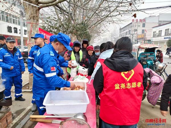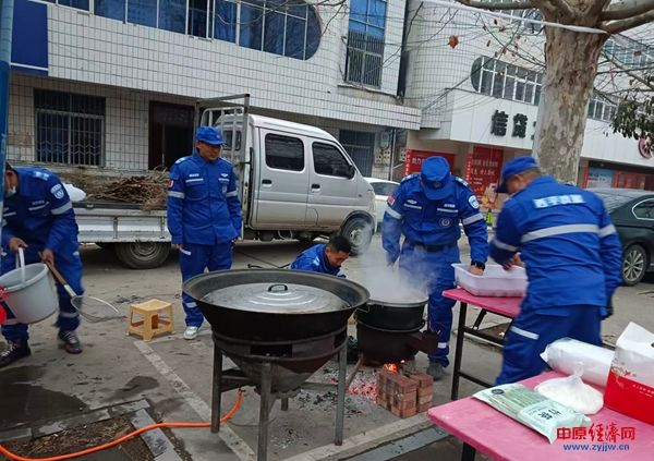 中原经济网驻马店讯(记者 杨晓 全媒体记者 冯占华 通讯员 王艳敏)腊月初八寒冬至,一碗热粥暖人心。1月26日清晨,西平县盆尧镇综治中心门前暖意融融,西平县应急救援协会的志愿者们身着蓝色救援服,早早支起锅灶,开展“应急为民 粥暖寒冬”新时代文明实践活动,为环卫工人、过往群众送上一碗碗热气腾腾的腊八粥,让这个寒冷的腊八节充满了浓浓的温情。