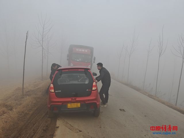 中原经济网驻马店讯(记者 杨晓 全媒体记者 冯占华 通讯员 朱可萱)1月27日,西平县人民法院执保组干警在赴许昌执行保全任务途中突遇浓雾,能见度骤降。车辆行至某路段时遭遇拥堵,干警武星下车查看,发现一位老人驾驶的电动四轮车滑入路边泥地,车轮深陷无法移动,后方车辆已排起长龙。