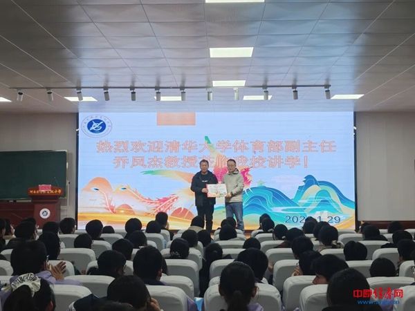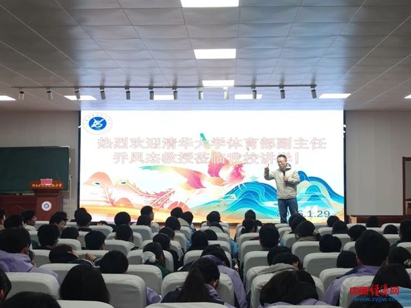 中原经济网驻马店讯(记者 杨晓 全媒体记者 冯占华 通讯员 李新洁)1月29日下午,清华大学体育部副主任、长聘教授乔凤杰莅临杨庄高中,为杨庄高中师生带来《体育运动对文化课学习的影响》专题报告。校领导班子成员、冠军实验班学生、体育教师、全体班主任及青年教师齐聚一堂,共探体教融合新路径。本次讲座由校党委委员、副校长赵大磊主持。