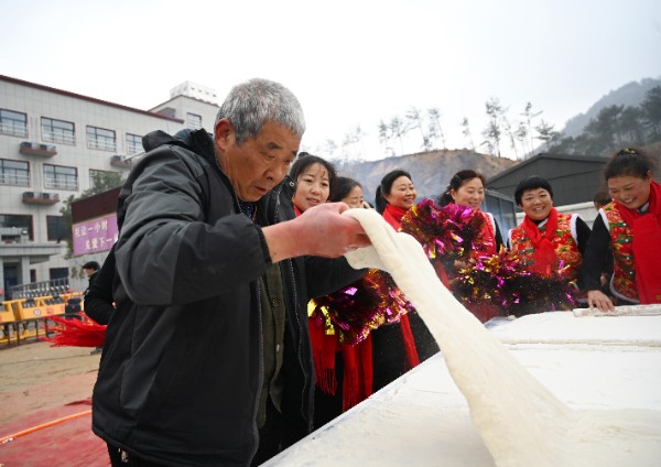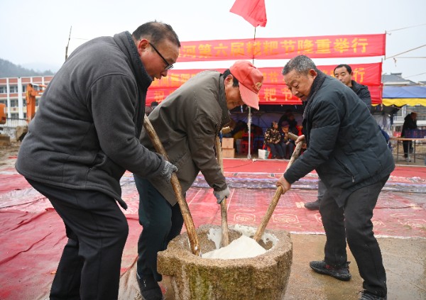 尽管朔风送寒,却挡不住村内的热闹气息,数百名村民与游客齐聚一堂,舞蹈队踏着节奏翩翩助兴,村民们的舂锤在石臼中起落,糯香随热气漫开。大家以这最朴实的民俗方式共迎新春,重温记忆里那份厚实而温暖的年味。
