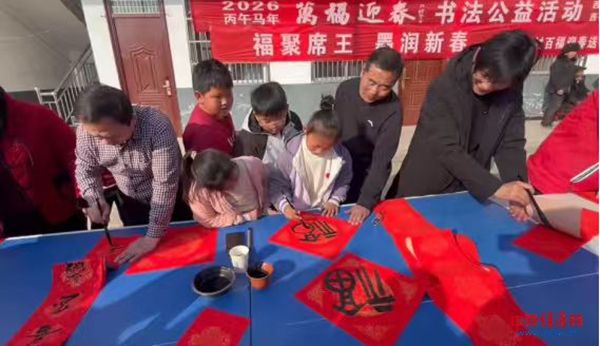 此次活动,焦庄乡特别邀请西平县文联副主席王文恺、西平县书法家协会主席孟祥臣、西平县书法家协会、美术家协会秘书长祝勤友、王守业、赵尊体亲临现场挥毫泼墨,为村民送上定制化的“文化年货”。活动现场,长桌整齐排列,大红宣纸徐徐铺展,艺术家们凝神聚力、笔走龙蛇,一副副融合社会主义核心价值观内涵与移风易俗美好祝愿的春联跃然纸上。村民们围聚桌前,或静心观赏创作过程,或根据自家需求点题求联,拿到春联和“福”字的群众脸上洋溢着幸福笑容。更令人暖心的是,艺术家们专门为席王寨村小学爱好书法的孩子们开辟了“传艺小课堂”,一对一指导孩子们握笔、运笔、临摹春联。孩子们学得认真专注,稚嫩的笔触在红纸上勾勒出青涩却真挚的“福”字与春联,在笔墨交融中感受中华优秀传统文化的魅力。此次活动累计送出春联及“福”字300余副,既让墨香与文明走进千家万户,更实现了传统文化的薪火相传,让新春的文化氛围愈发浓厚。