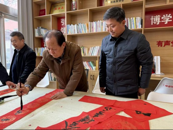 仪式结束后,书画院的艺术家们还兴致勃勃地参观了社区文化活动中心的书画室、阅览室等功能区域,并与社区书画爱好者进行了亲切交流,现场挥毫泼墨,开展写春联送祝福活动。