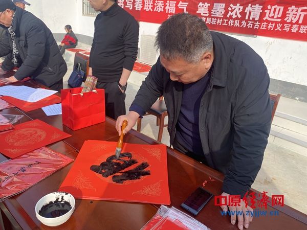 中原经济网驻马店讯 (记者 杨晓 全媒体记者 晨曦 通讯员 张玉霞 郭华宾)寒冬送暖,翰墨飘香。为弘扬中华优秀传统文化,将党和政府的关怀与温暖送到群众心坎上,2月4日,在驻马店市驿城区“驿小驿”政务服务中心站负责人梁丽的带领下政务中心志愿者及“驿小驿”志愿者,携手爱心企业朵菲装饰董事长王永威和知柚商贸有限公司及几位知名书法家,一同走进驿城区老河乡石古庄村,开展了一场别开生面的“义写春联送温暖”活动。