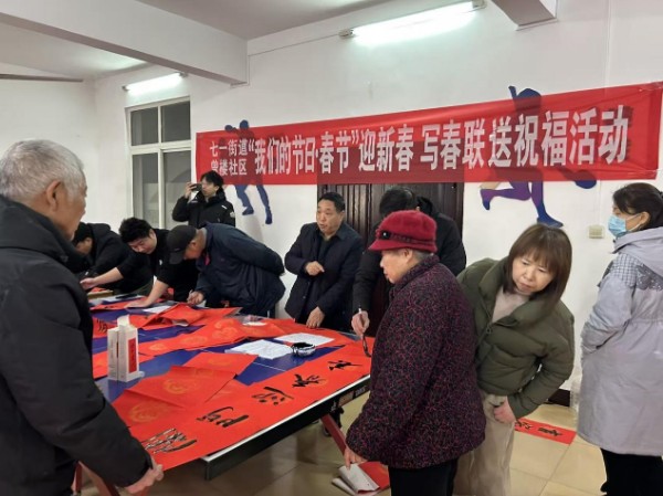 为迎接新春佳节,弘扬中华优秀传统文化,丰富辖区居民精神文化生活,进一步凝聚邻里温情,2月5日,卧龙区七一街道曾楼社区精心策划了“笔墨送福”迎新春活动,让居民在家门口就能感受浓浓的年味儿与贴心关怀,在欢声笑语中拉近邻里距离。