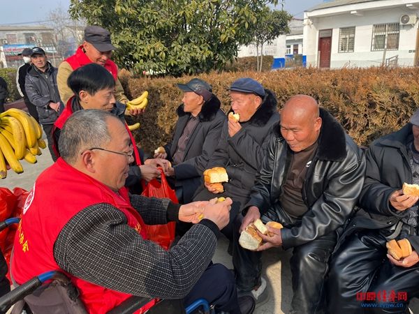 中原经济网驻马店讯(记者 杨晓 全媒体记者 冯占华 通讯员 张祎萌)寒冬送暖,温情暖心。2月5日,西平县芦庙乡贴心志愿者服务队联合西平县好人协会走进芦庙乡敬老院开展新春慰问活动,为在院居住的老人送去猪肉、白菜、萝卜、香蕉、点心等生活物资。