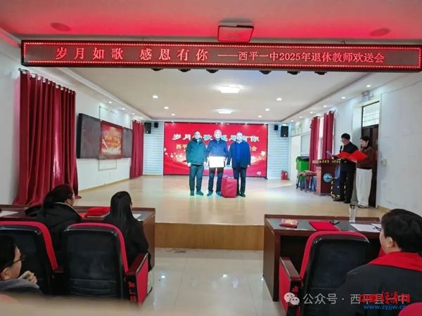 总有一种坚守,温润时光;总有一种告别,饱含敬意。以“岁月如歌·感恩有你”为主题的教师荣休仪式在此举行。西平一中全体教职员工齐聚一堂,共同为关献科、尹丽、胡月莲三位荣休教师送上最真挚的祝福与敬意,见证他们教育生涯的光荣转身。校长张明磊和工会主席李伟共同为荣休教师颁发荣休纪念牌并赠送纪念品。