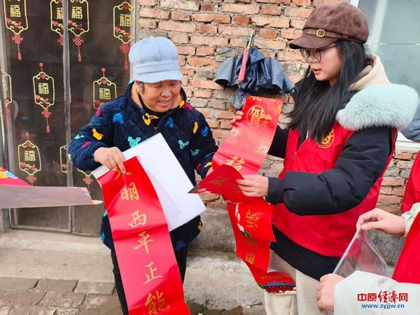 中原经济网驻马店讯(记者 杨晓 全媒体记者 冯占华 通讯员 李佳蕊)新春将至,年味渐浓。为让困难家庭、空巢老人等特殊群体感受到新春的温暖与关怀,2月5日,西平县宋集镇“翼展计划”志愿者团队开展“上门赠春联、温情迎新春”活动,志愿者们带着移风易俗春联与新春祝福,走进困难家庭和空巢老人家中,用笔墨传递关爱,用行动温暖人心。