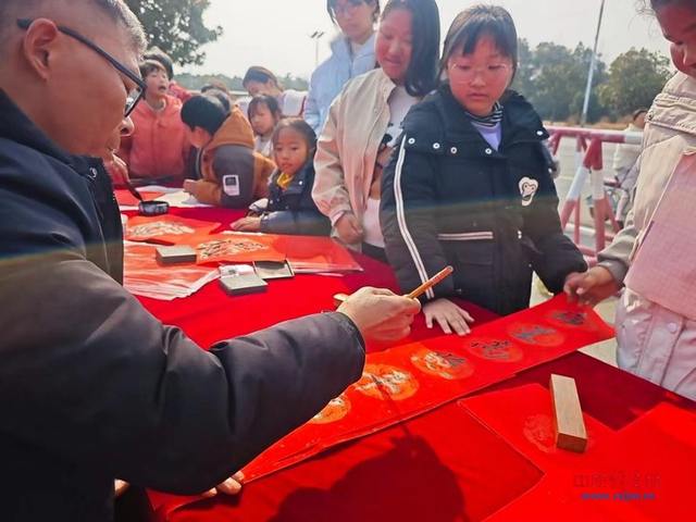 从工整的楷书到灵动的行书,从经典的春联佳句到定制的专属祝福,每一幅作品都饱含心意。师生们将写好的春联与福字精心整理,现场赠送给家长、教职工与公交司机。接过墨香犹存的春联,大家脸上洋溢着幸福的笑容,纷纷拿出手机记录这温暖瞬间,一句句“新年快乐”“阖家安康”的祝福,在校园里传递开来,年味与温情交织,让冬日的校园格外热闹。
