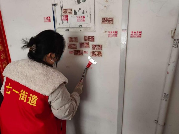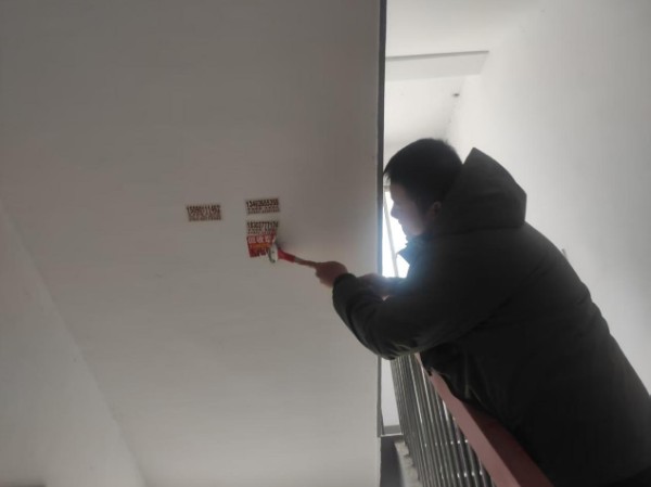 社区工作人员与志愿者组成专项清理小组,按楼栋分工、逐单元推进清理工作。大家携带铲刀、除胶剂、扫帚、漆桶等工具,分工协作、默契配合。有的俯身铲除墙面、电表箱、楼梯扶手上的小广告,重点清理顽固贴纸,做到不留残迹;有的清扫楼道地面垃圾,清运堆积杂物,规范楼道公共空间使用;有的擦拭公共设施,让楼道环境焕然一新,确保整治工作无死角、无遗漏。