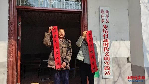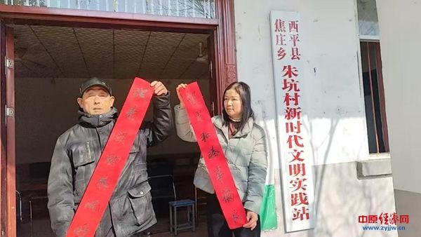 中原经济网驻马店讯(记者 杨晓 全媒体记者 冯占华 通讯员 张艺)2月8日,西平县焦庄乡朱坑村开展写春联送春联文明实践活动,将第一波“年货”送到群众手中。