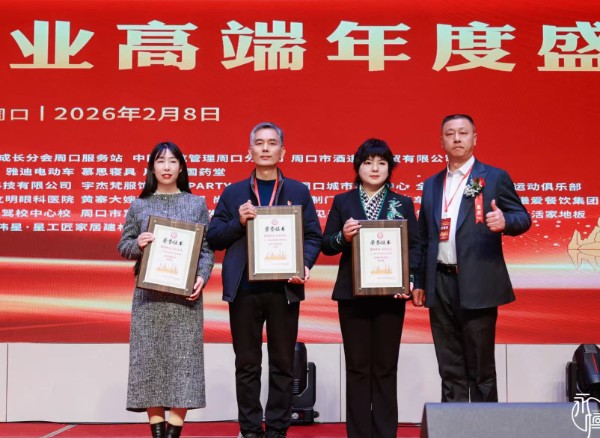 2月8日,由周口市诚信文化促进会百佳同盟商会与中国中小企业协会企业家成长分会周口服务站联合主办的“百佳典范 企航未来 2026周口高端年度盛会”隆重举行。两家会员企业代表、合作伙伴、媒体嘉宾齐聚一堂,共叙情谊、共商合作、共谋发展,在喜庆祥和的氛围中,擘画新时代民营经济高质量发展新蓝图。