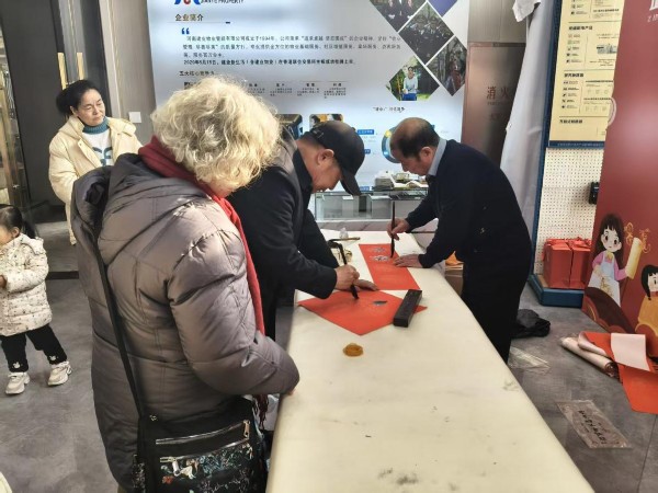 活动现场张灯结彩、喜气洋洋,政和苑售楼部内设置的写春联、非遗糖画两大特色体验区域人气爆棚,居民们扶老携幼、踊跃参与,欢声笑语萦绕现场,处处洋溢着温馨热闹的节日氛围。
