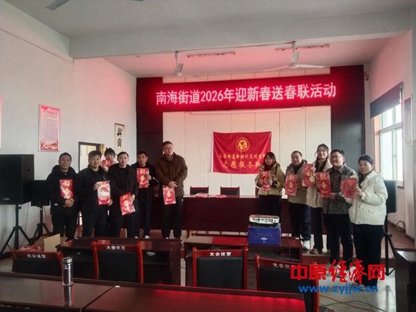 中原经济网驻马店讯 (记者 杨晓 全媒体记者 晨曦 通讯员 彭丽)为营造喜庆祥和的春节氛围,进一步丰富干部职工的精神文化生活,近日,驻马店市驿城区南海街道组织开展了2026年“迎新春 送春联”文明实践活动。
