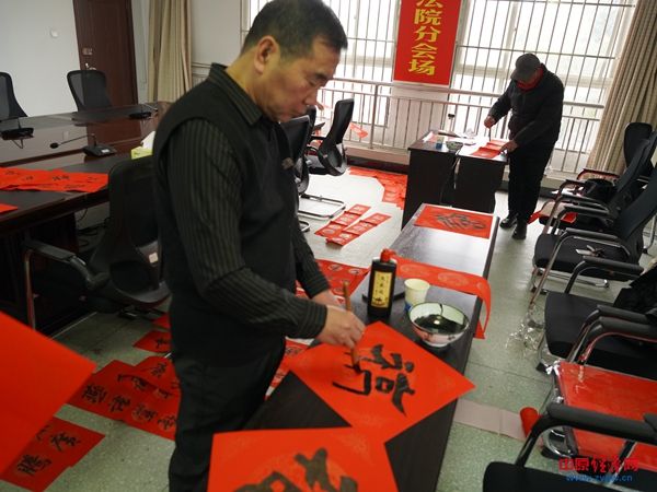 中原经济网驻马店讯(记者 杨晓 全媒体记者 冯占华 通讯员 杨斐)为进一步弘扬中国传统文化,加强法院文化建设,丰富法院干警精神文化生活,2月9日,西平县人民法院开展“社会主义核心价值观·移风易俗春联进万家”文明实践主题活动,本次活动特别邀请西平县知名书法家走进法院,为法院工作人员送上新春美好的祝福。