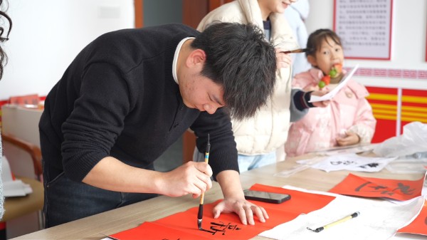 红纸铺展,翰墨飘香。在手写春联活动区,干警们挥毫泼墨,将美好的新春祝愿凝于笔端。一行行俊秀的书法、一句句真诚的祝福,带来了浓浓的节日气息。“官司理清民心顺,纠纷化解日子安”“春风化雨润法治,正气扬帆惠民生”……一副副蕴含法治精神又充满年味的春联在笔下诞生。