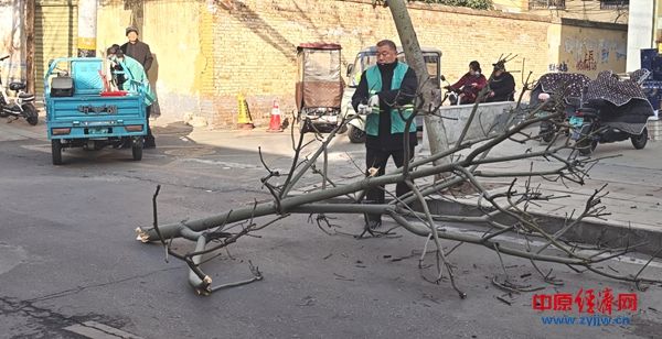 中原经济网驻马店讯 (记者 杨晓 全媒体记者 刘勇伟 通讯员 徐瑗婧)春节临近,驻马店开发区城市管理事务中心紧盯辖区绿化安全,坚持“预防在先、发现即处”。2月13日上午,养护人员在友谊路巡查时发现行道树断枝,从发现到清理完毕用时不到30分钟,及时消除安全隐患,保障市民出行安全。