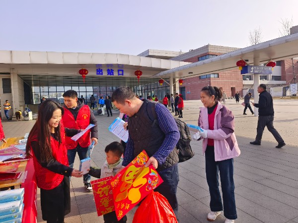 新春将至,年味渐浓。为营造喜庆祥和、文明健康、安全有序的节日氛围,让归家游子度过一个温暖、洁净、安心的春节,信阳供水公司组织青年志愿者和党员先锋队在火车站北广场开展丰富多样的志愿服务活动,将新春祝福、暖心服务送到群众身边,用一抹抹“志愿红”点亮归途、温暖人心,让归乡旅途更温馨,让新春年味更浓郁。