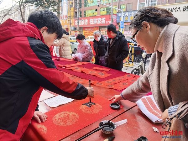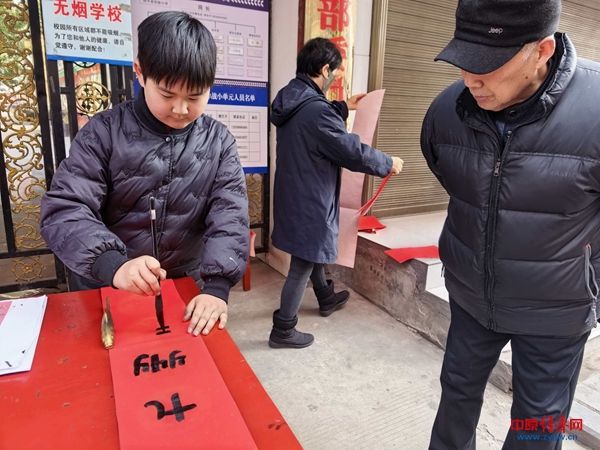 校长李艳也在现场不时鼓励孩子们大胆书写,对孩子们的精彩表现高度认可。来往群众络绎不绝、驻足观赏,纷纷称赞孩子们写得太棒了,对小小少年展现出的传统文化素养赞不绝口。大家有序领取春联,手捧着红彤彤的春联,脸上洋溢着喜庆的笑容,在欢声笑语中体味浓浓的年味与祝福,现场洋溢着喜气洋洋的节日氛围。