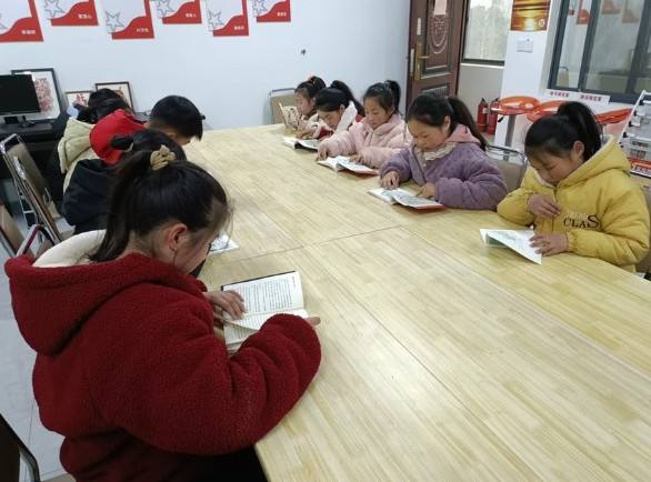 活动现场暖意流淌,书香萦绕,新时代文明实践站的阅读区被精心布置,工作人员提前挑选整理了适合青少年阅读的各类书籍,涵盖经典文学名著、中华民俗故事、中国历史文化、新春主题绘本、儿童励志读物等多个品类,整齐摆放的书籍琳琅满目,为孩子们打造了一个“书香小天地”。现场安静有序,孩子们个个神情专注,从民俗故事里探寻春节的由来、了解贴春联、剪窗花、守岁等传统年俗的美好寓意,从经典名著中感受文字的力量,从历史读物里触摸中华文脉的温度。
