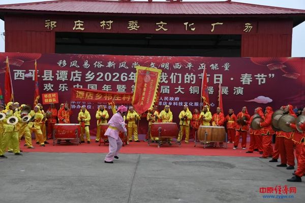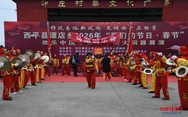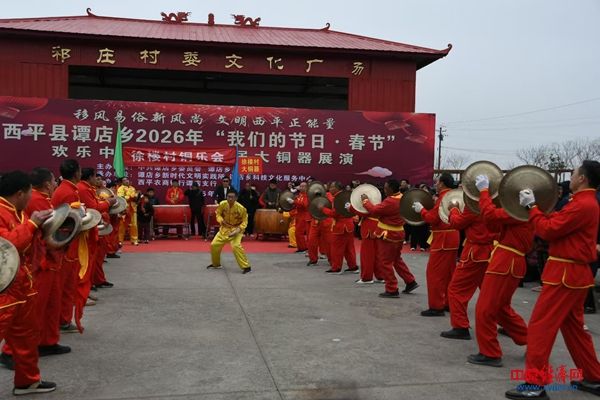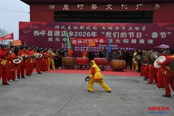 中原经济网驻马店讯(记者 杨晓 全媒体记者 冯占华 通讯员 李爽 张宇航)骏马迎春铜器震,瑞风送福岁时新。为传承弘扬优秀传统文化,丰富群众精神文化生活,2月25日上午,西平县谭店乡2026年“我们的节日·春节”欢乐中国年暨第十届大铜器展演在祁庄村文化广场隆重举行,来自全乡的10支代表队的400余名民间艺人齐聚一堂,为现场千余名观众带来了一场震撼人心的非遗文化盛宴。