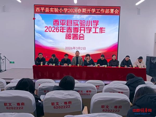 中原经济网驻马店讯(记者 杨晓 全媒体记者 冯占华 通讯员 于丽娜)为确保2026年春季学期开学工作平稳有序、高效推进,明确新学期工作目标与任务,凝聚全校教职工奋进力量,3月2日上午,西平县实验小学召开2026年春期开学工作部署会。会议由办公室主任彭爱华主持,学校领导班子及全体教职工参加会议。