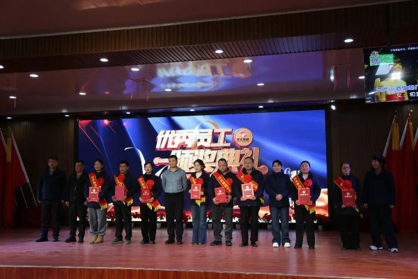 讲话结束后,左亚彬总经理现场宣读《关于邦杰集团2025年度优秀员工表彰的决定》文件,共授予8名员工“年度优秀员工”称号,获奖人员中既有扎根生产车间20年的老员工,也有默默奉献的科研技术骨干,以及深耕市场的80后销售精英和兢兢业业的后勤保障人员。随后集团领导班子集体上台为获奖个人颁发荣誉证书,以及总价值5800元的2箱豫商贡品酒、邦杰牛肉、牛腱、邦杰小子休闲牛肉和清真肠系列产品,模范的力量引得全场掌声经久不息。