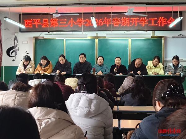 中原经济网驻马店讯(记者 杨晓 全媒体记者 冯占华 通讯员 段会平)春启新程,逐光而行。为明确新学期工作目标,统筹部署各项任务,凝聚育人合力,3月4日上午,西平县第三小学召开2026年春季开学全体教师会。全体教师齐聚一堂,以饱满热情、昂扬姿态,共绘新学期教育发展蓝图。