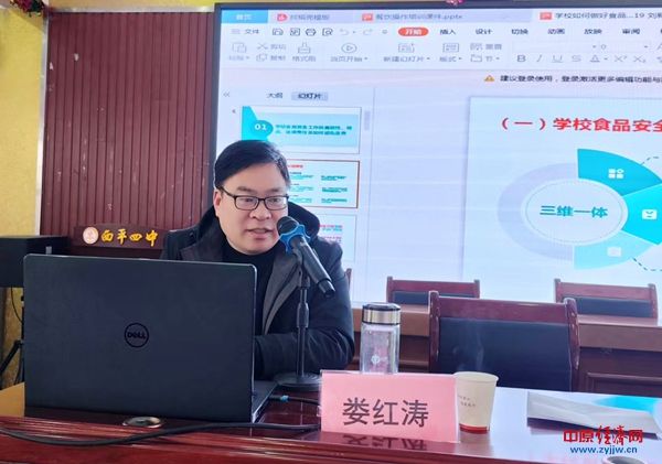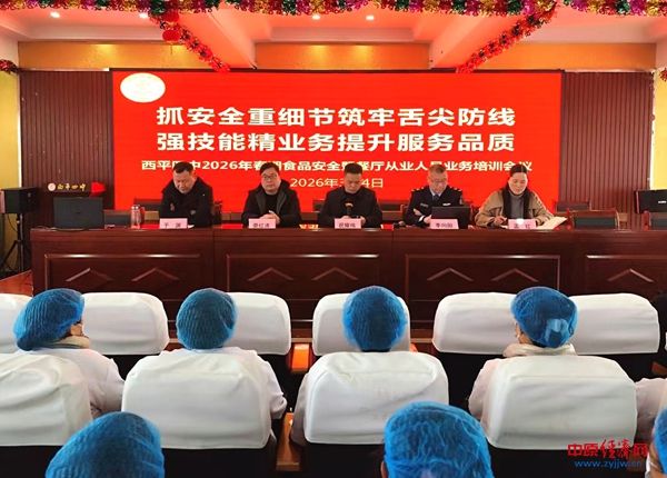 中原经济网驻马店讯(记者 杨晓 全媒体记者 冯占华 通讯员 付明飞)为切实做好新学期校园食品安全工作,提升餐厅从业人员的专业素养与服务意识,3月4日,西平四中在六楼报告厅召开2026年春期食品安全暨餐厅从业人员业务培训会议。会议特邀西平县市场监督管理局相关领导莅临指导,通过专题讲座、座谈交流与现场检查相结合的方式,为新学期校园食品安全工作奠定坚实基础。