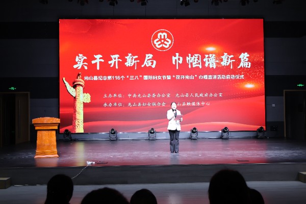 3月5日上午,光山县“实干开新局 巾帼谱新篇”纪念第116个“三八”国际妇女节暨“花开光山”巾帼宣讲启动仪式在司马光剧院成功举办。县领导赵小军、张梦瑶、李彬、汪锋普出席活动。各乡镇(街区)分管妇联工作的负责同志、妇联主席或专职副主席、县直各单位妇联干部,“花开光山”巾帼宣讲团成员以及各行各业优秀女性代表等共130余人参加活动。