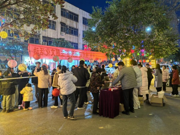 活动现场,群众参与热情高涨。大家或驻足凝思,或小声探讨,沉浸在猜谜的乐趣之中。“这个灯谜我知道答案!”“我猜对啦!” 随着一个个灯谜被破解,喜悦的笑容洋溢在每个人脸上。志愿者协助工作人员为猜对灯谜的群众送上精美礼品,让参与者在互动中收获了满满的节日喜悦。