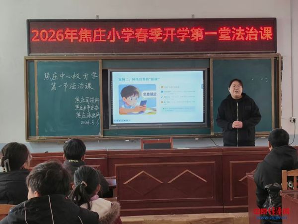 中原经济网驻马店讯(记者 杨晓 全媒体记者 冯占华 通讯员 刘小瑞)为深入贯彻全县教育系统2026年春季开学工作部署会精神,严格落实“开学第一堂法治课”工作要求,切实增强学生法治意识与自我保护能力,营造安全、文明、和谐的校园环境,近日,西平县焦庄小学精心组织开展2026年春季开学第一堂法治课主题教育活动。学校提前对接法治副校长,把法治教育作为开学“第一课”,为全体学生送上新学期法治“平安礼”。