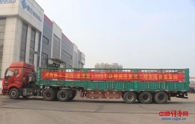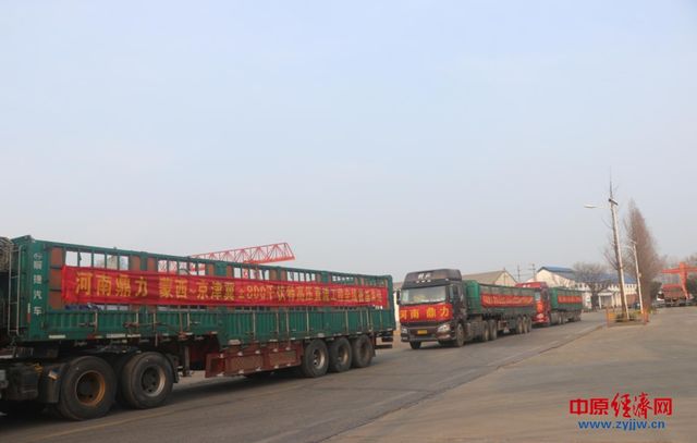 中原经济网驻马店讯(记者 杨晓 全媒体记者 冯占华 通讯员 欣怡)3月8日,位于西平县柏国大道的河南鼎力公司蒙西~京津冀±800千伏特高压直流工程全线首基发运。三辆挂着红条幅的大货车满载铁塔部件,一字长龙开出公司大门,浩浩荡荡奔向施工现场。