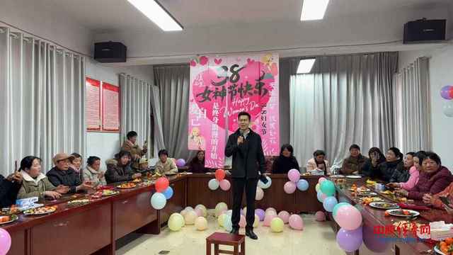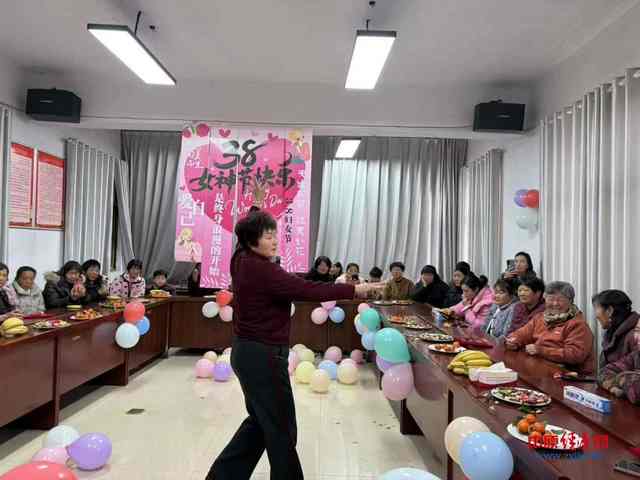 活动现场布置温馨喜庆,粉、白、紫等色彩的气球装点着场地,背景板上“女神节快乐”的字样格外醒目。活动中,村里的文艺爱好者登台献艺,用舞蹈、歌声、朗诵传递节日的喜悦与对妇女同胞的赞美,现场掌声不断,氛围热烈。