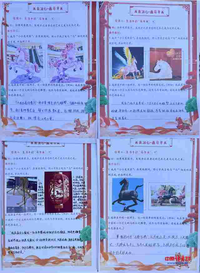 高年级学生则以“奋进骏马”之姿,展示主题绘画、马年文创、环保创意改造等美育成果,废旧纸盒变身骏马模型,塑料瓶化作精美摆件,创意十足。暖心小事记录表上,连续七日为家人服务的坚持令人动容;故事感悟卡中,对忠诚、坚毅等品格的思考真挚深刻。运动计划表记录着每日打卡的汗水,技能学习档案写下学会新本领的喜悦。与AI对话马文化的记录妙趣横生,科技小发明设计图充满奇思妙想,为寒假实践增添了创新亮色。