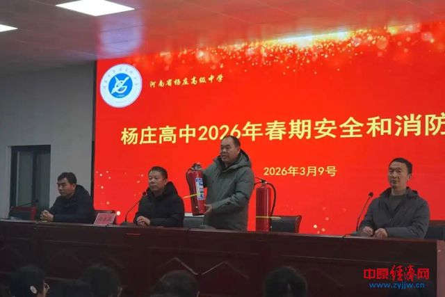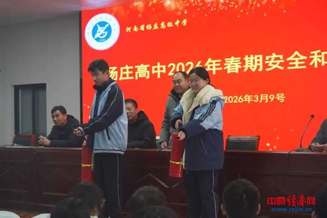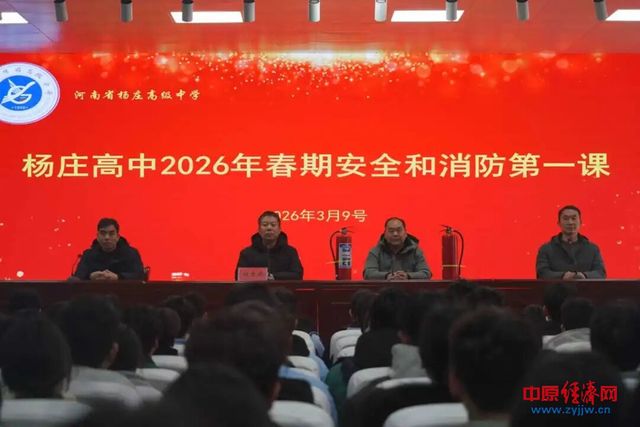 中原经济网驻马店讯(记者 杨晓 全媒体记者 冯占华 通讯员 张卫强)3月9日下午,西平县杨庄高中在报告厅隆重举行2026年春期安全与消防第一课专题教育。党委委员、副校长赵大磊,安保中心主任崔新中、政教处副主任焦文平、安保中心张永强及各班学生班长、寝室长参与本次活动。活动由安保中心张永强主持。