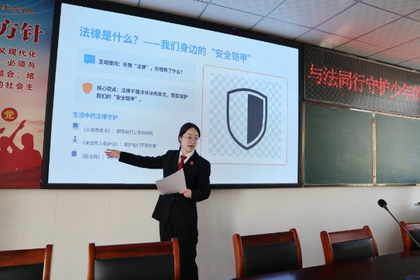 讲解过程中,干警通过提问的形式引导孩子们主动思考,鼓励大家勇敢说出生活中遇到的安全困惑,分享对法律的理解,现场气氛热烈,孩子们踊跃举手、积极回应,在轻松的氛围中掌握了实用的法律知识和自我保护技巧。活动结束后,干警还为同学们发放了未成年人普法宣传手册,让法治知识真正走进孩子们的心里。