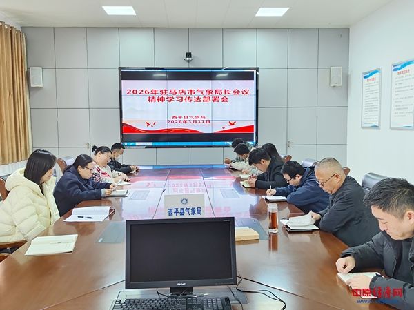 中原经济网驻马店讯(记者 杨晓 全媒体记者 冯占华 通讯员 张力)为深入贯彻落实全市气象工作部署,奋力实现“十五五”良好开局,3月11日上午,西平县气象局召开专题会议,第一时间传达学习2026年全市气象局长会议精神,全体干部职工参会。