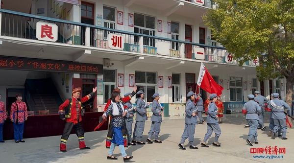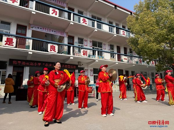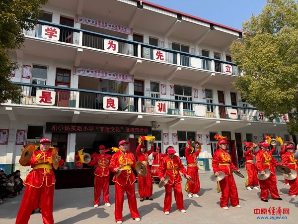 中原经济网驻马店讯(记者 杨晓 全媒体记者 冯占华 通讯员 杨柳)为弘扬中华优秀传统文化,推动非物质文化遗产融入校园美育,让青少年近距离感受非遗魅力、厚植文化自信,2026年3月11日,柏亭汤买赵小学举办“非遗文化进校园 文脉润心伴成长”主题文艺展演。活动以传统大铜器震撼开场,融合民俗表演、国粹技艺、红色情景剧与民间舞蹈,为全校师生献上一场兼具观赏性与教育性的文化盛宴。