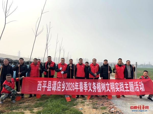中原经济网驻马店讯(记者 杨晓 全媒体记者 冯占华 通讯员 孙晓会)春风送暖,万物勃发,正是植树播绿的好时节。3月12日上午,在第48个植树节当天,西平县谭店乡组织开展2026年春季义务植树文明实践主题活动,广大干部群众携手为家园增添新绿,共同绘就生态画卷。