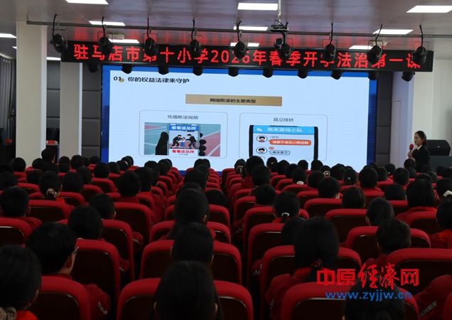 中原经济网驻马店讯 (记者 杨晓 全媒体记者 晨曦 通讯员 苏梦园 秦红杰)为筑牢校园安全防线,增强学生的法治意识与自我保护能力,3月12日下午,驻马店市第十小学开展了以“守网络安全,拒校园欺凌”为主题的2026年春季开学法治第一课。主会场设在四楼会议室,各班同步观看主会场的直播,全校师生1539人参与此次活动。