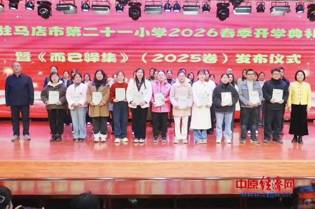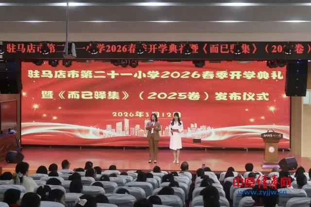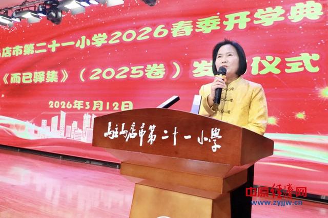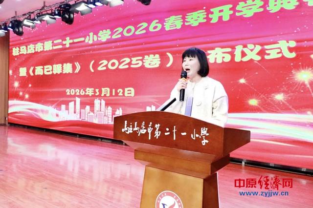 中原经济网驻马店讯 (记者 杨晓 全媒体记者 晨曦 通讯员 陈东阳)春风拂面,万物萌新。3月12日下午,驻马店市第二十一小学的校园里洋溢着蓬勃朝气,全校师生与家长代表齐聚一堂,共同迎来2026年春季开学典礼暨《而已驿集》(2025卷)新书发布仪式。这场以“阳光教育”为底色、以文化传承为亮点的盛会,既是新学期的起航号角,更是学校内涵发展的生动注脚。