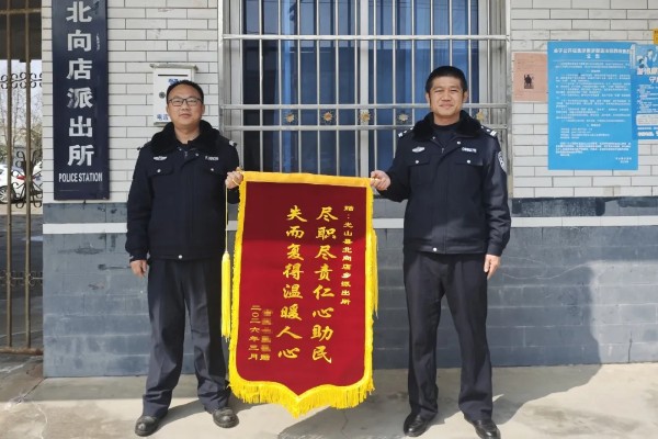3月10日上午,王先生给北向店派出所送来一面“尽职尽责仁心助民 失而复得温暖人心”的鲜红锦旗,以表谢意。